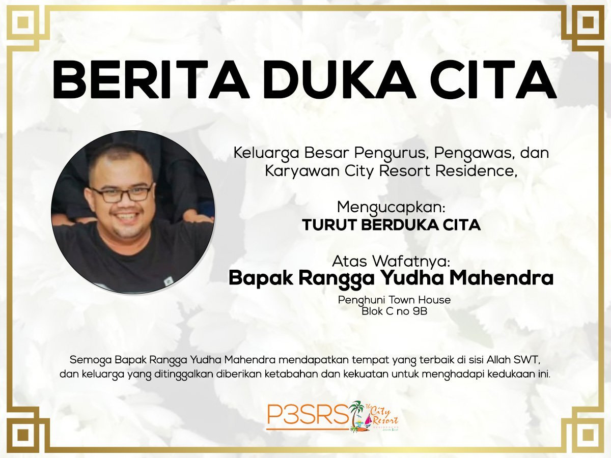 Dengan rasa duka cita yang mendalam, kami mengumumkan bahwa telah berpulang ke Rahmatullah Bapak Rangga Yudha Mahendra, penghuni Town House The City Resort Residence Blok C no 9B. Almarhum wafat pada tanggal 25 Mei 2023, sekitar pukul 11 malam.