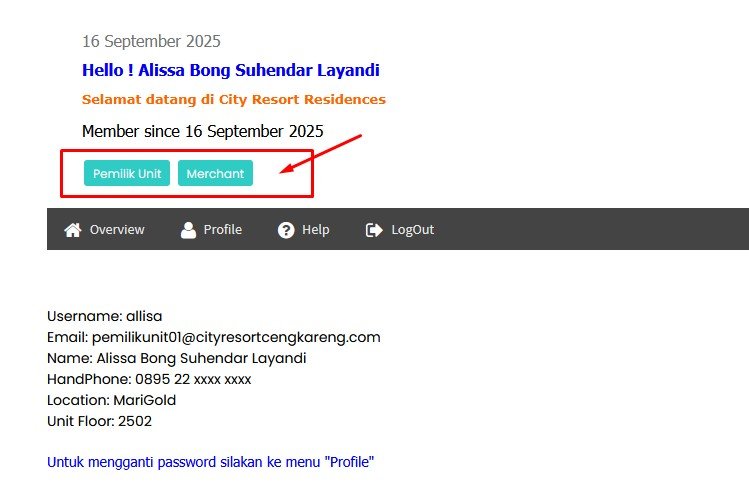 Contoh, mula-mula username = allisa adalah membership biasa, kemudian mengajukan (request) untuk mengubahnya kepada AdminWeb menjadi sebagai “Pemilik Unit” dan “Merchant” yaitu orang yang mempunyai unit pada City Resort Residences , sekaligus orang yang membuka iklan pada situs ini (merchant), jadi “role” atau “membership” seseorang dapat biasa, 1 buah membership atau membership 2 buah atau lebih tergantung sesuai kebutuhannya