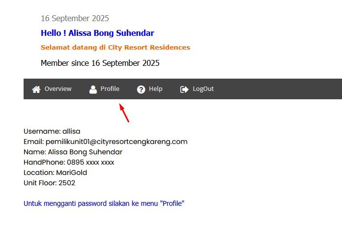 Menu “Profile” untuk mengubah data diri dan password