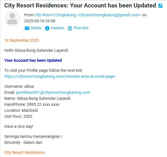 Setelah melakukan perubahan, sistem akan mengirimkan email konfirmasi “Your Account has been Updated