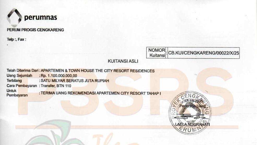 City Resort sudah melakukan pembayaran Rekomendasi SHGB Tahap ke-1 sebesar Rp 1.100.000.000