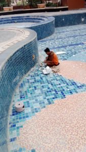 Seluruh keramik yang retak dan pecah di dasar maupun pinggiran kolam telah diganti dengan material baru berkualitas tinggi. Untuk memastikan keamanan pengguna, area tepi kolam kini menggunakan keramik anti-slip, sehingga risiko terpeleset dapat diminimalisir secara signifikan. Selain itu, seluruh nat (grout) pada dasar dan dinding kolam di-refill kembali, memastikan kerapatan dan daya tahan kolam tetap optimal dalam jangka panjang.
